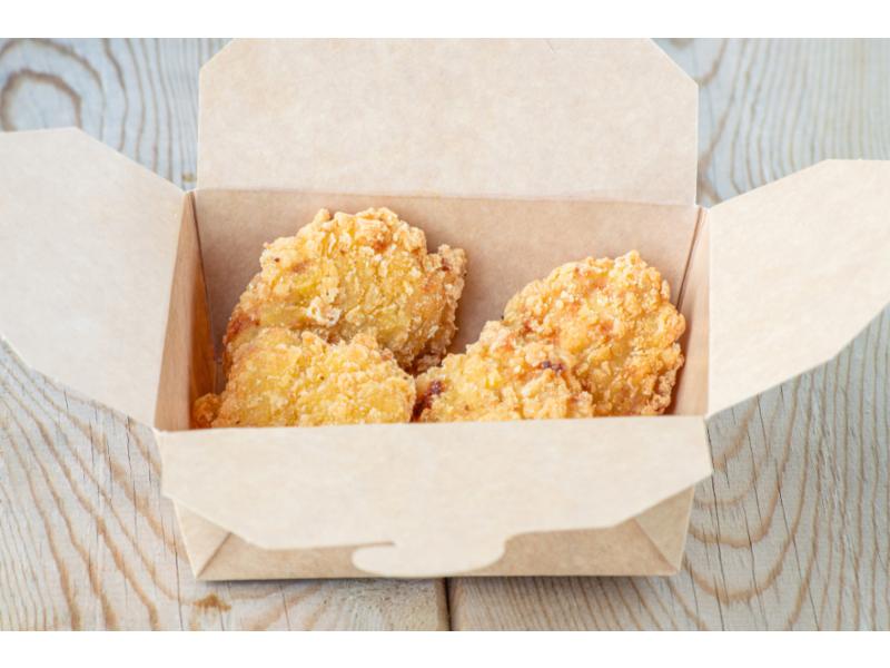 Friterte gylne og sprø panerte stykker av utbeinet kyllinglår.